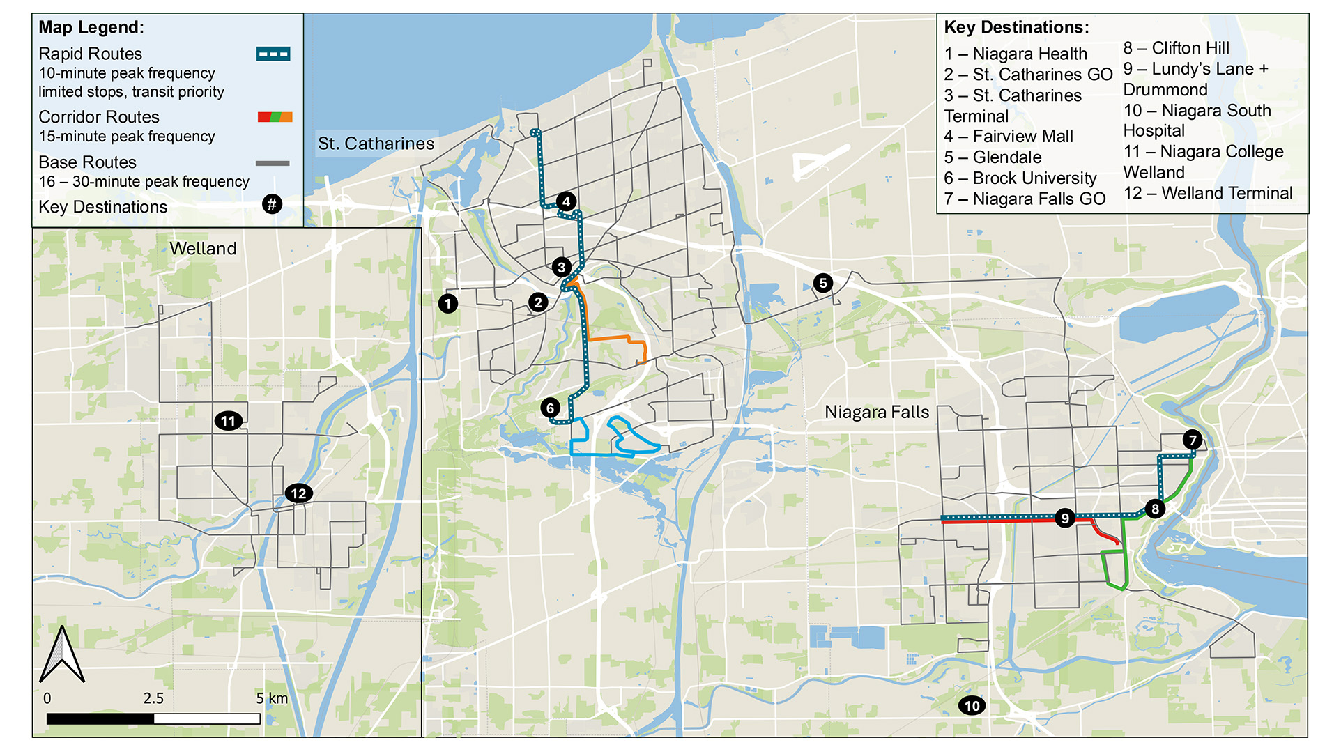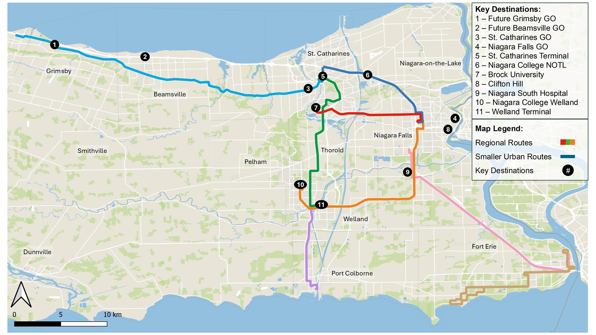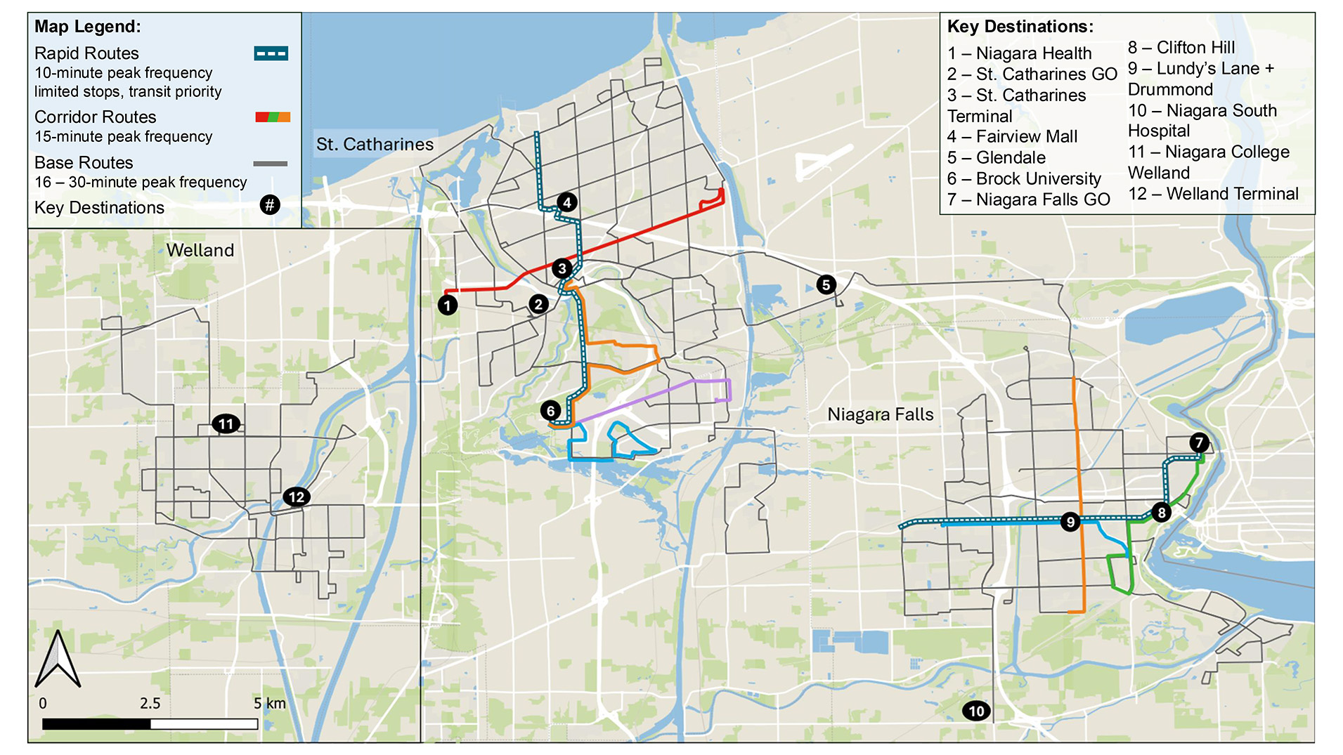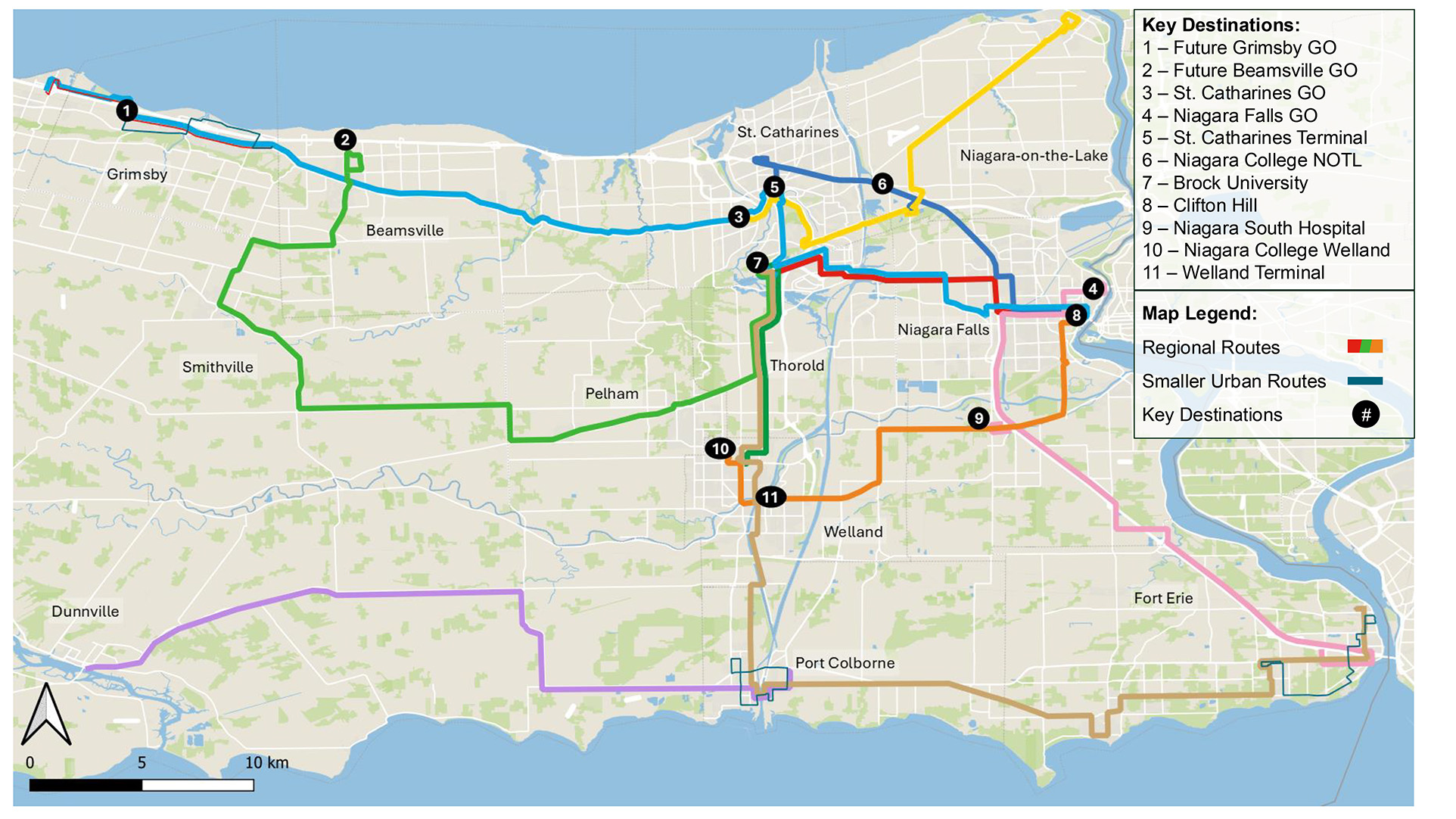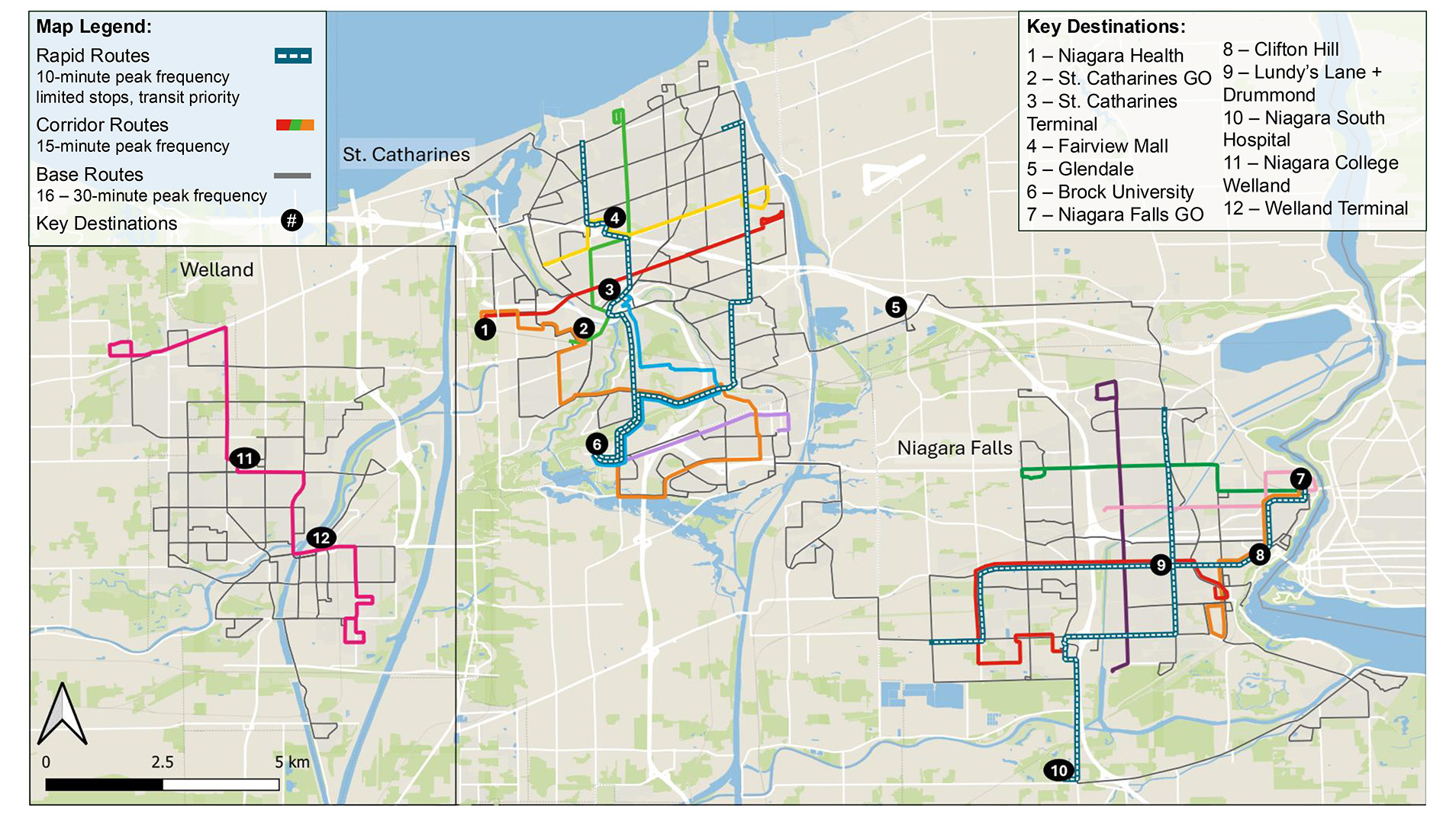 - One long high-frequency 15-minute route connecting Pelham and Welland