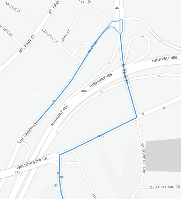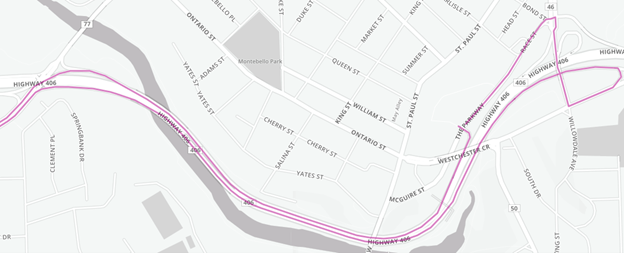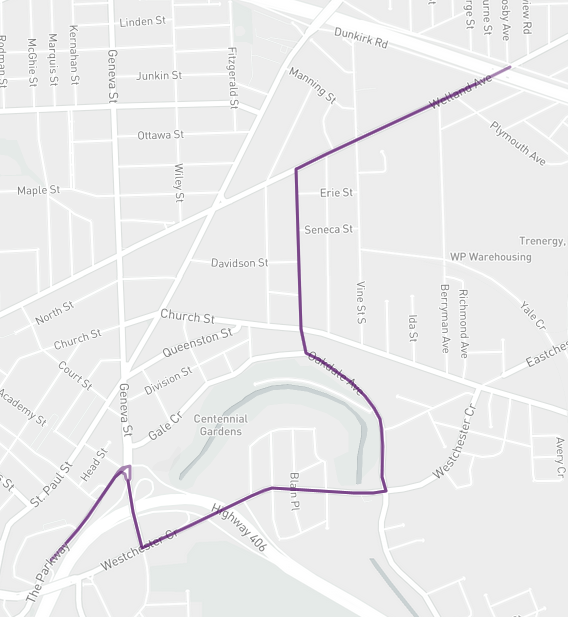Routes 410 & 416: Take Parkway, Geneva, Westchester, and Glenridge instead of King Street, Ontario Street, and St. Paul Street.
